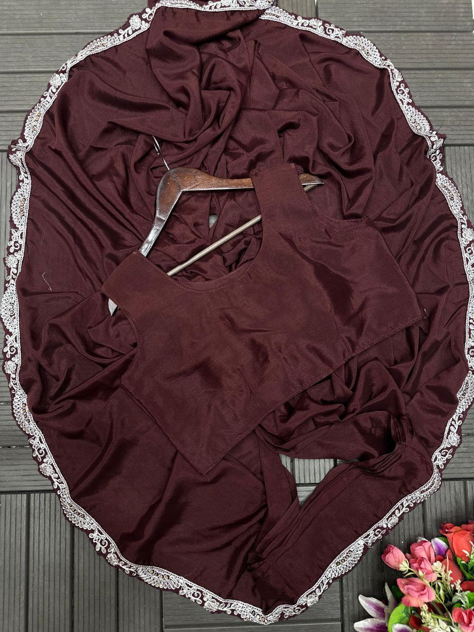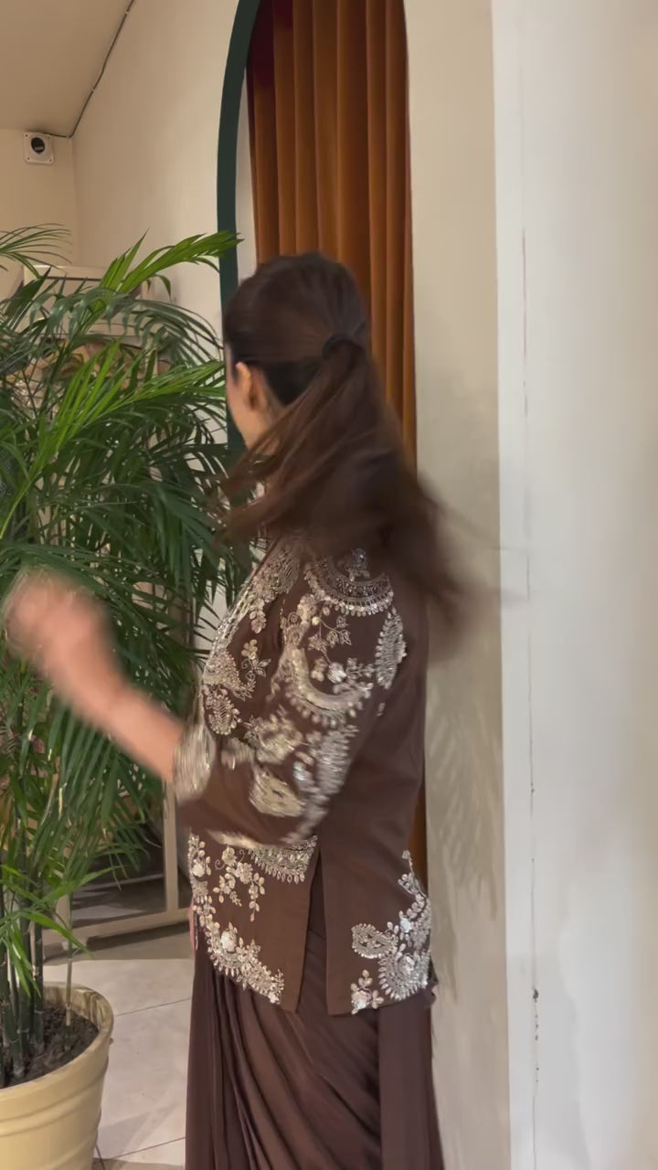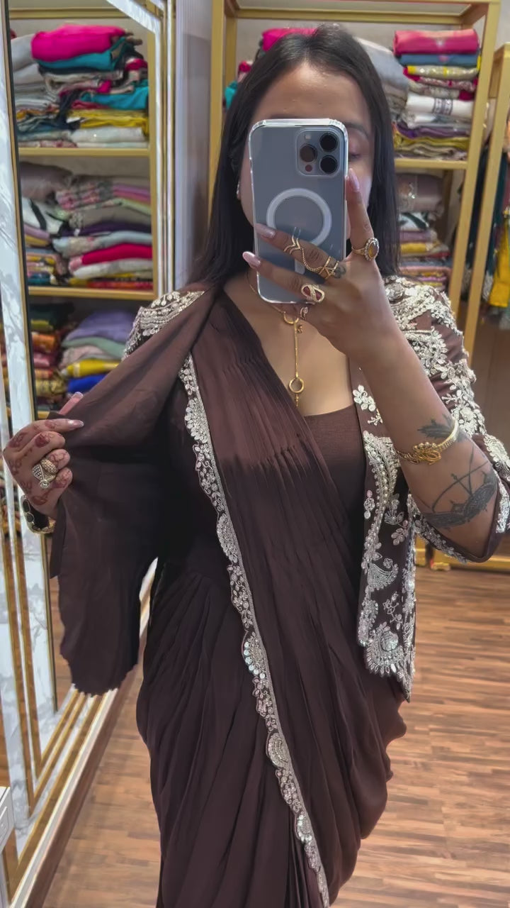 Chocolate Brown Embroidered Ready-to-Wear Saree with Designer jacket