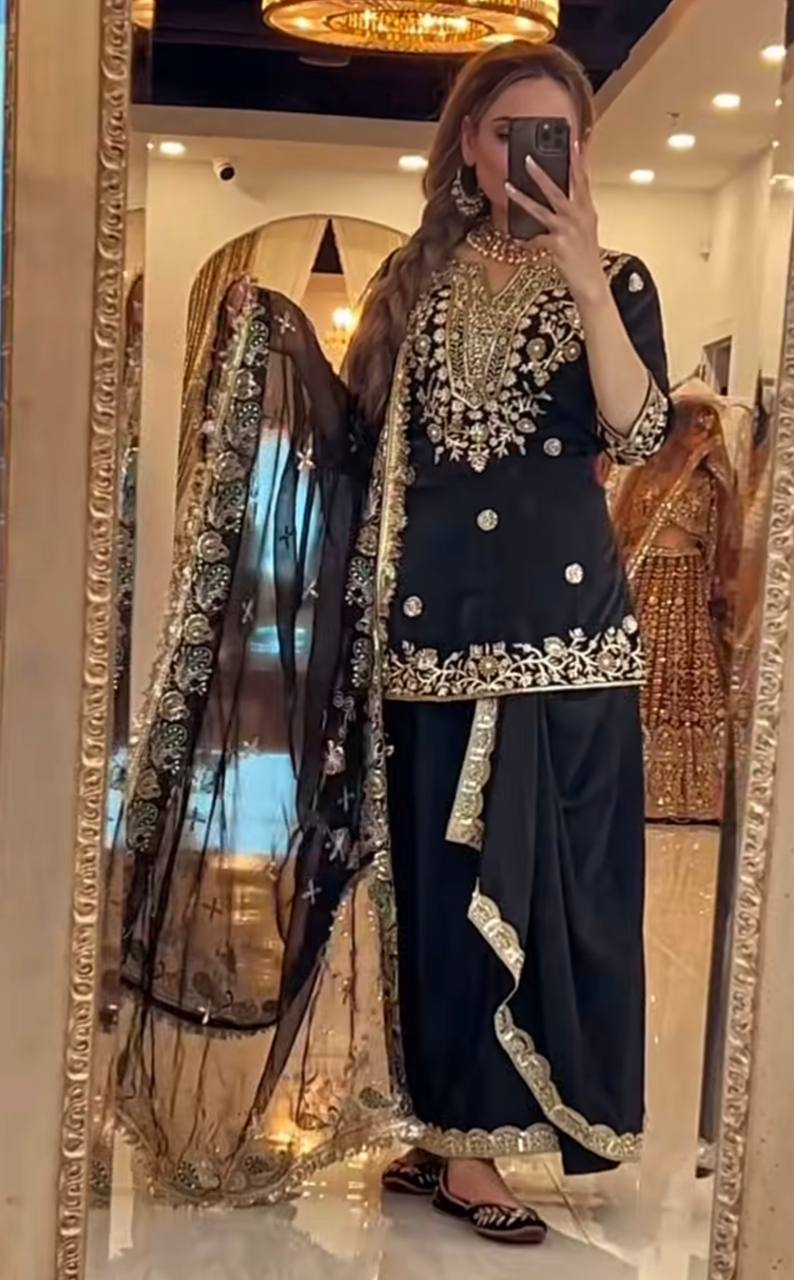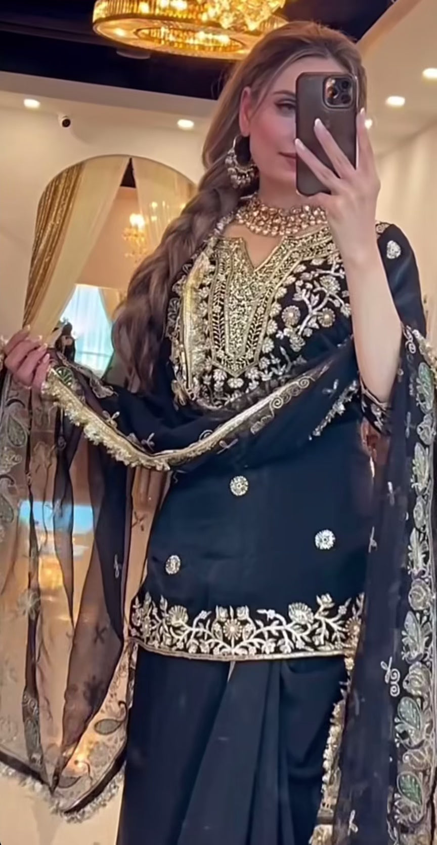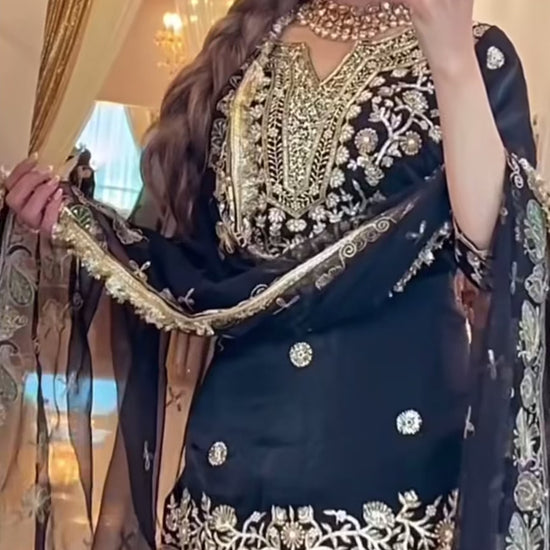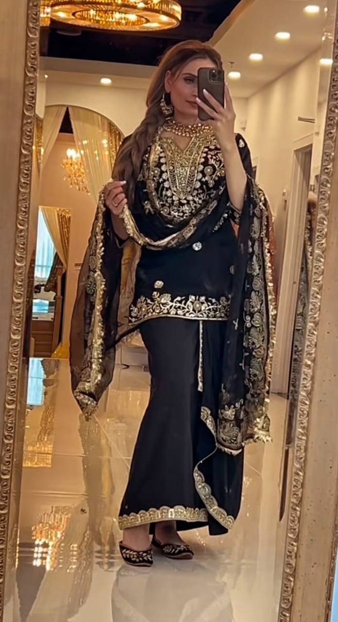 Step into elegance with our Premium Black Embroidered Farshi Salwar Suit.