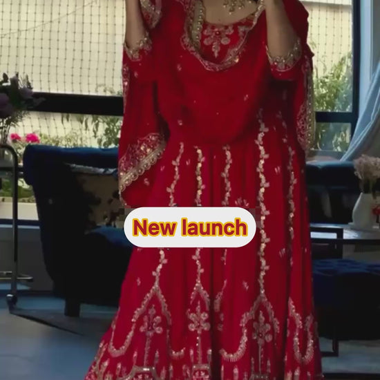 Experience timeless elegance with this Designer Heavy Natural Crepe Anarkali Suit, crafted with premium embroidery and 5mm sequence work.