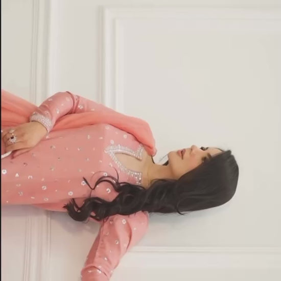 This stunning Chinnon Silk Top with Farshi Salwar is crafted for elegance and comfort. Beautifully detailed with multi-needle embroidery, 5mm sequins, zari work, and fancy lace finishing, this outfit is perfect for festive events, parties, weddings, and celebrations.