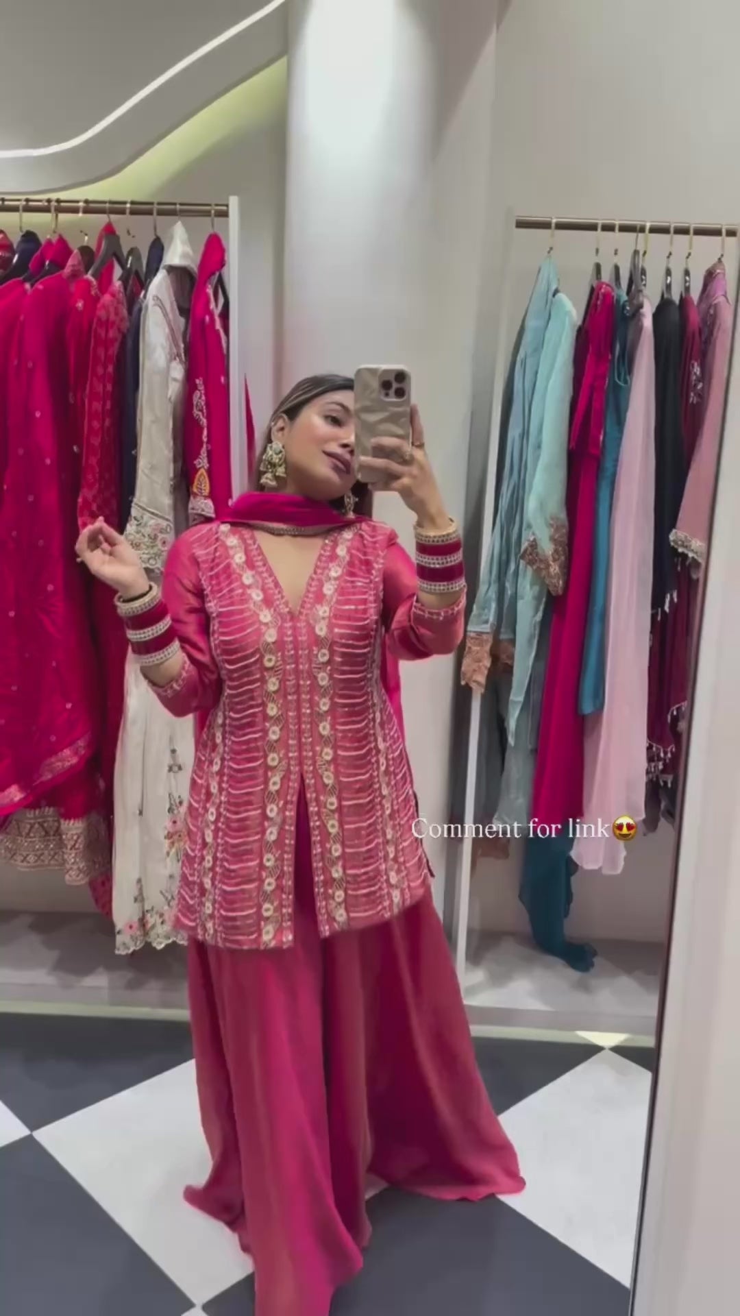 Elevate your festive style with this luxurious Heavy Simar Silk Palazzo Suit Set, crafted with beautiful Embroidery + Hand Work detailing.