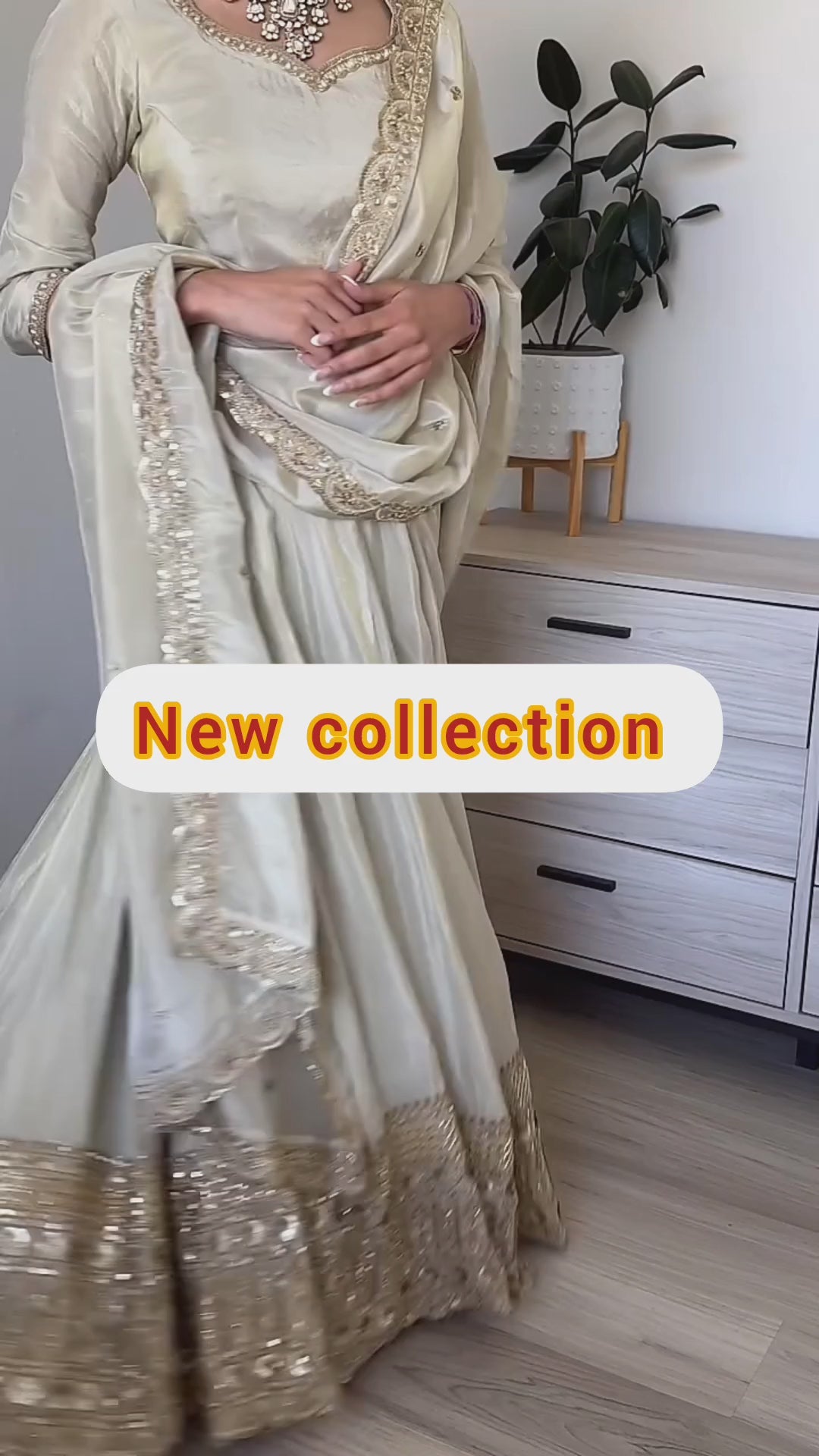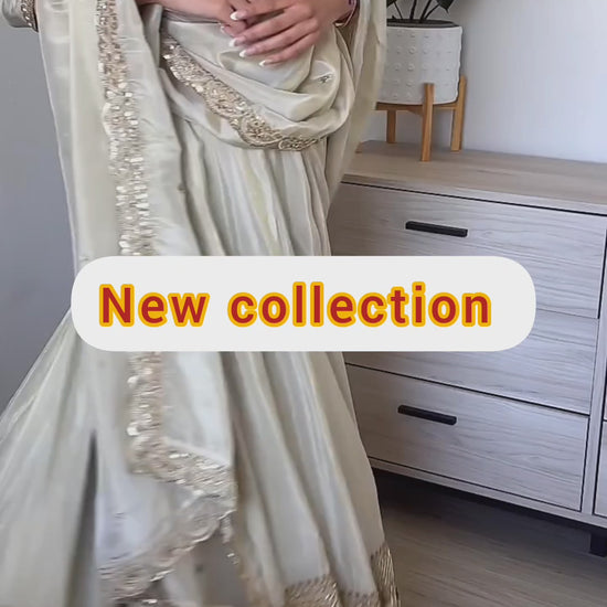 Make a graceful bridal statement with this elegant Lehenga Choli & Dupatta set, crafted in premium Neutral Crepe Silk and adorned with heavy embroidery, 5mm sequence work, and diamond detailing. A timeless design perfect for weddings and grand celebrations.