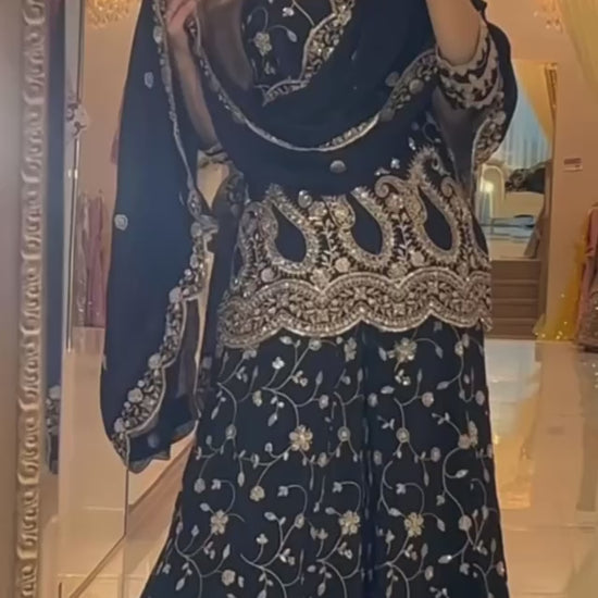 Premium Black Chinnon Silk Sharara Set with Heavy Sequence Embroidery & Dupatta