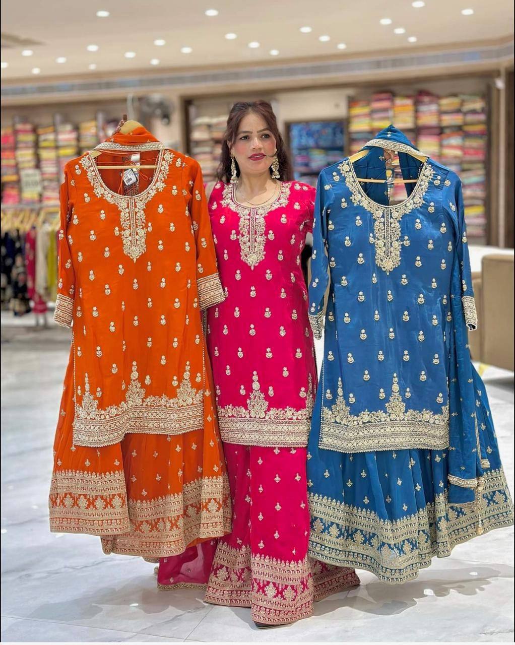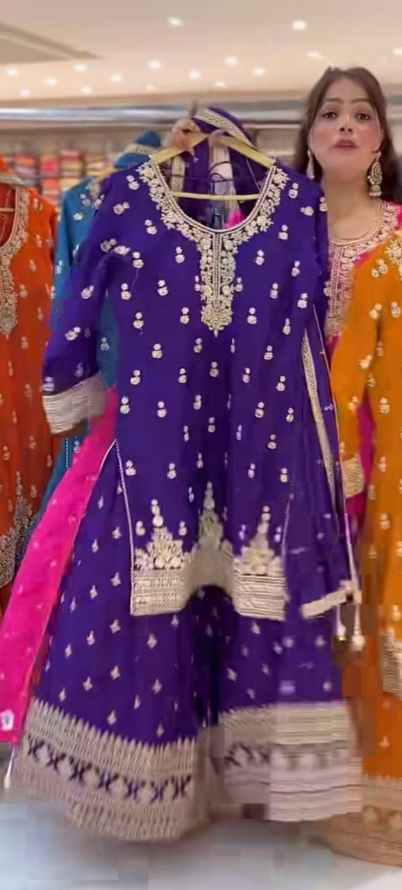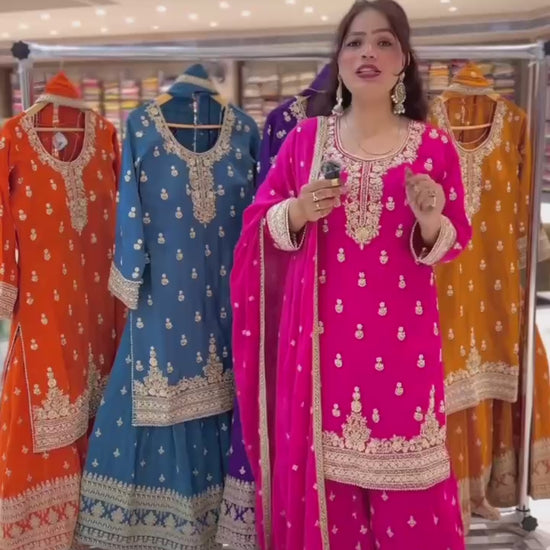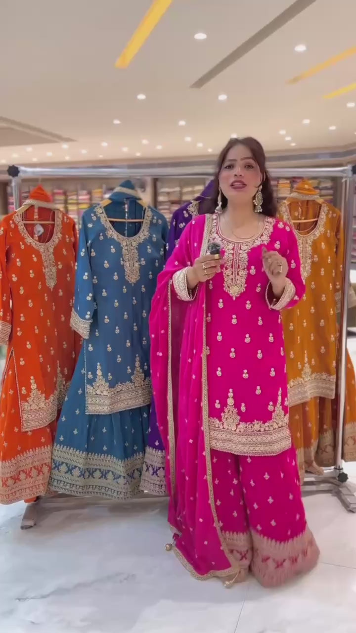 Premium Heavy Chinnon Silk Sharara Set with Dupatta | Party Wear Designer Suit