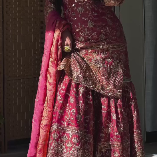 Sharara Palazzo: Heavy Fandy Crushi Silk with 5mm Sequence Embroidery