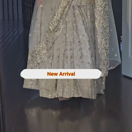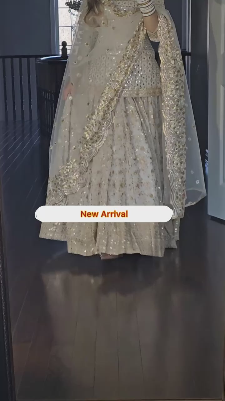 Introducing our Luxury White & Gold Designer Top Lehenga Set, crafted in rich Faux Georgette with exquisite 9mm sequence embroidery, zari work, and multi-needle craftsmanship. This stunning ensemble is perfect for weddings, receptions, festivals, sangeet, mehndi, engagements and all grand celebrations.