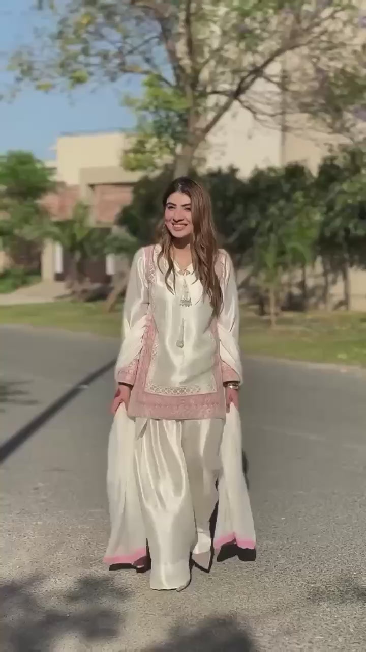 This elegant party wear set features a kurta crafted from luxurious Roman silk, adorned with intricate sequence embroidery on mono Banaglory silk borders and delicate pearl tassels at the neckline. The fully stitched farshi salwar, also in Roman silk, offers a comfortable 39-inch length. Complementing the ensemble is a georgette dupatta with a refined mono Banaglory silk border. Available in sizes M to XXL, this set combines sophisticated craftsmanship with premium fabrics for a graceful and stylish look.